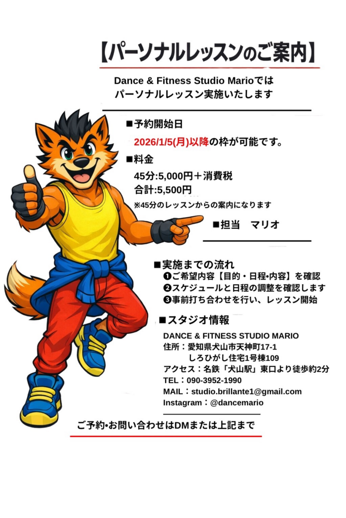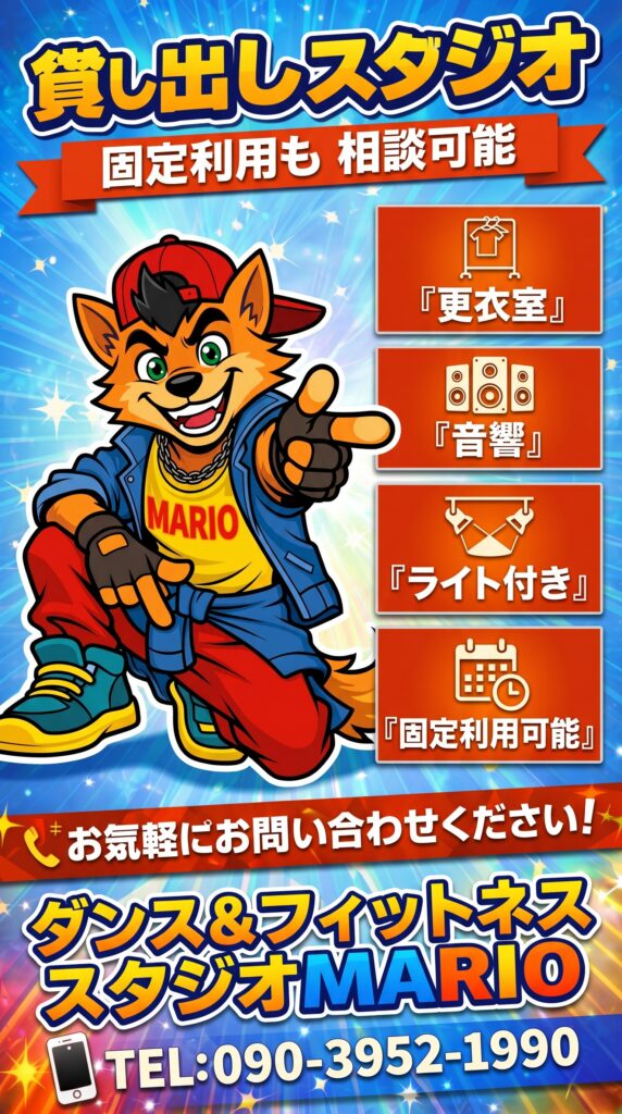 ダンス&フィットネススタジオ MARIOは、健康と楽しさが詰まったダンス・フィットネススタジオです。