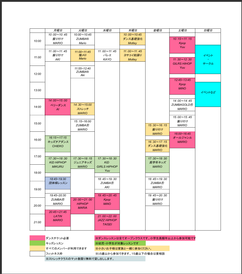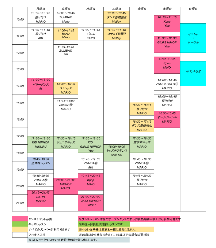 フィットネスインストラクターMARIOによる業界では珍しいダンス&フィットネスW体制で運営しています。