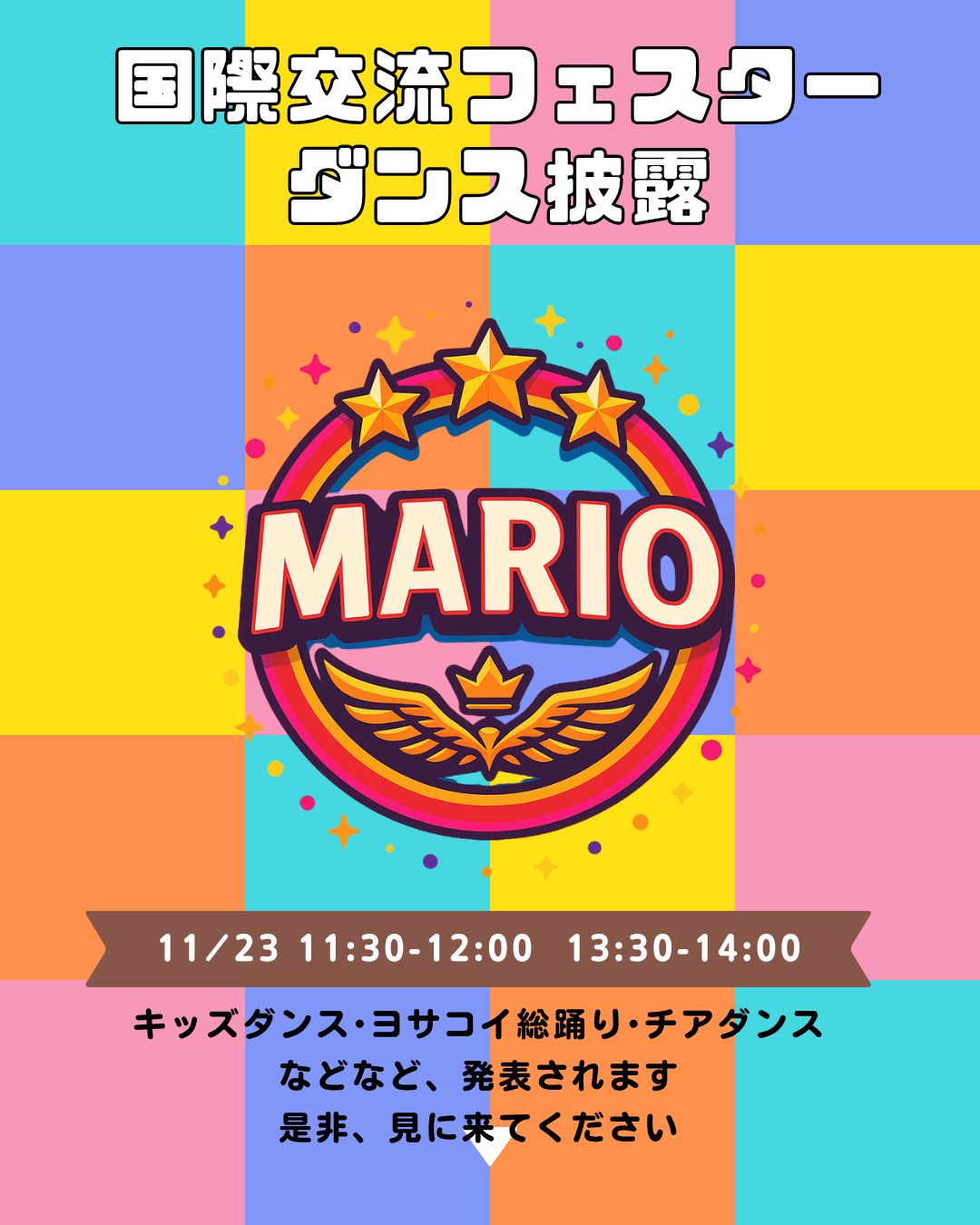 11/23(日) 犬山駅カラクリ時計前犬山市のダンススタジオ DANCE & FITNESS STUDIO MARIO が、「国際交流フェスター ダンス披露」に出演します💃🕺